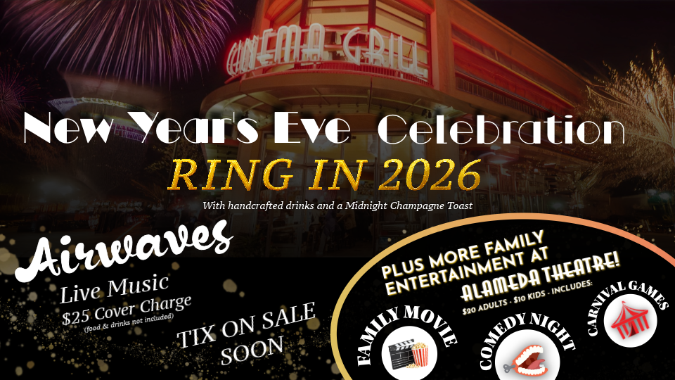 Right next door to the Alameda Theatre & Cineplex in Downtown Alameda. Come see us before or after your movie, or you can order delicious food & drinks to be enjoyed in your theatre seat during the movie! We offer an eclectic selection of tasty options paired with craft cocktails, regional wines, and micro brews!