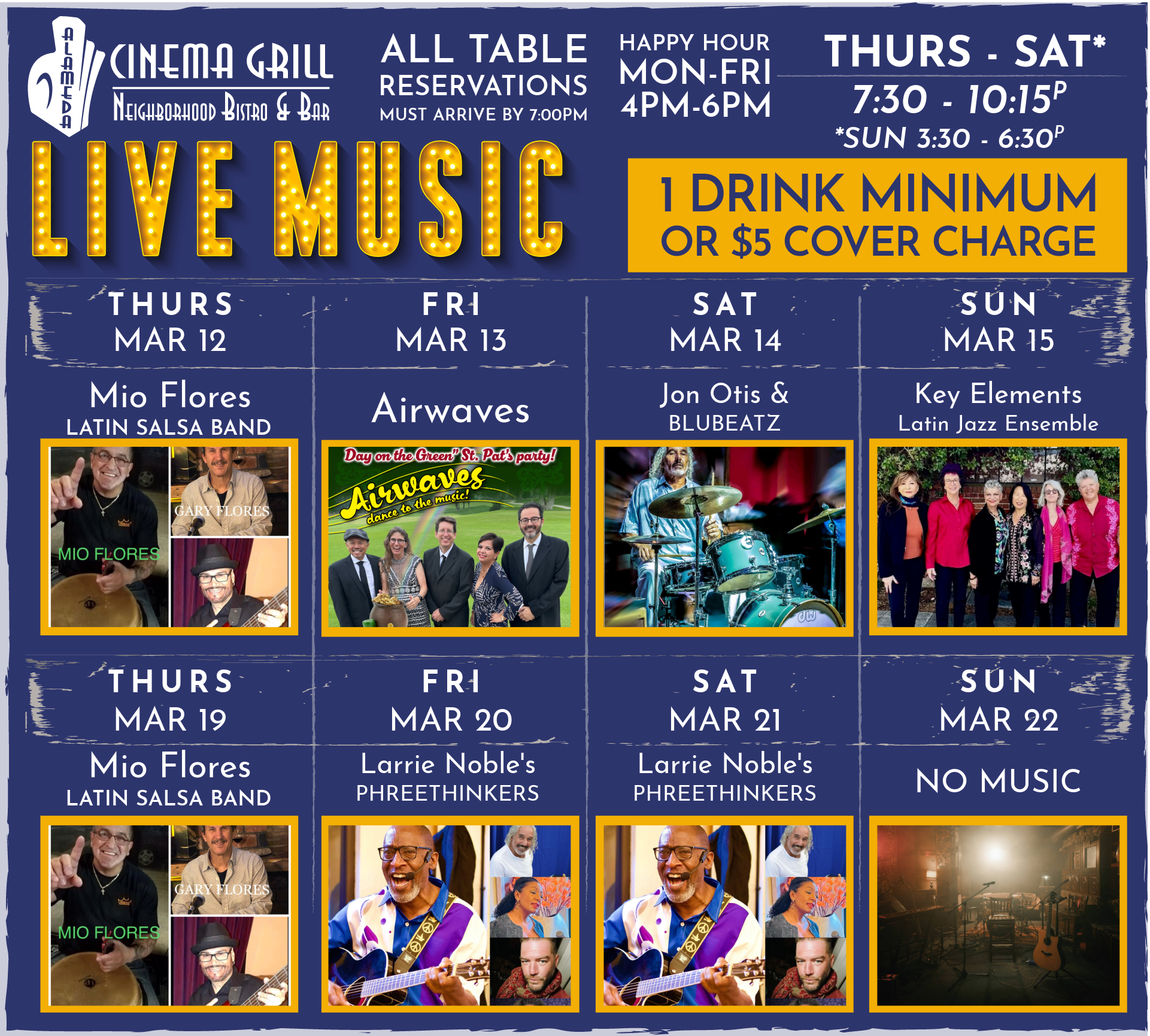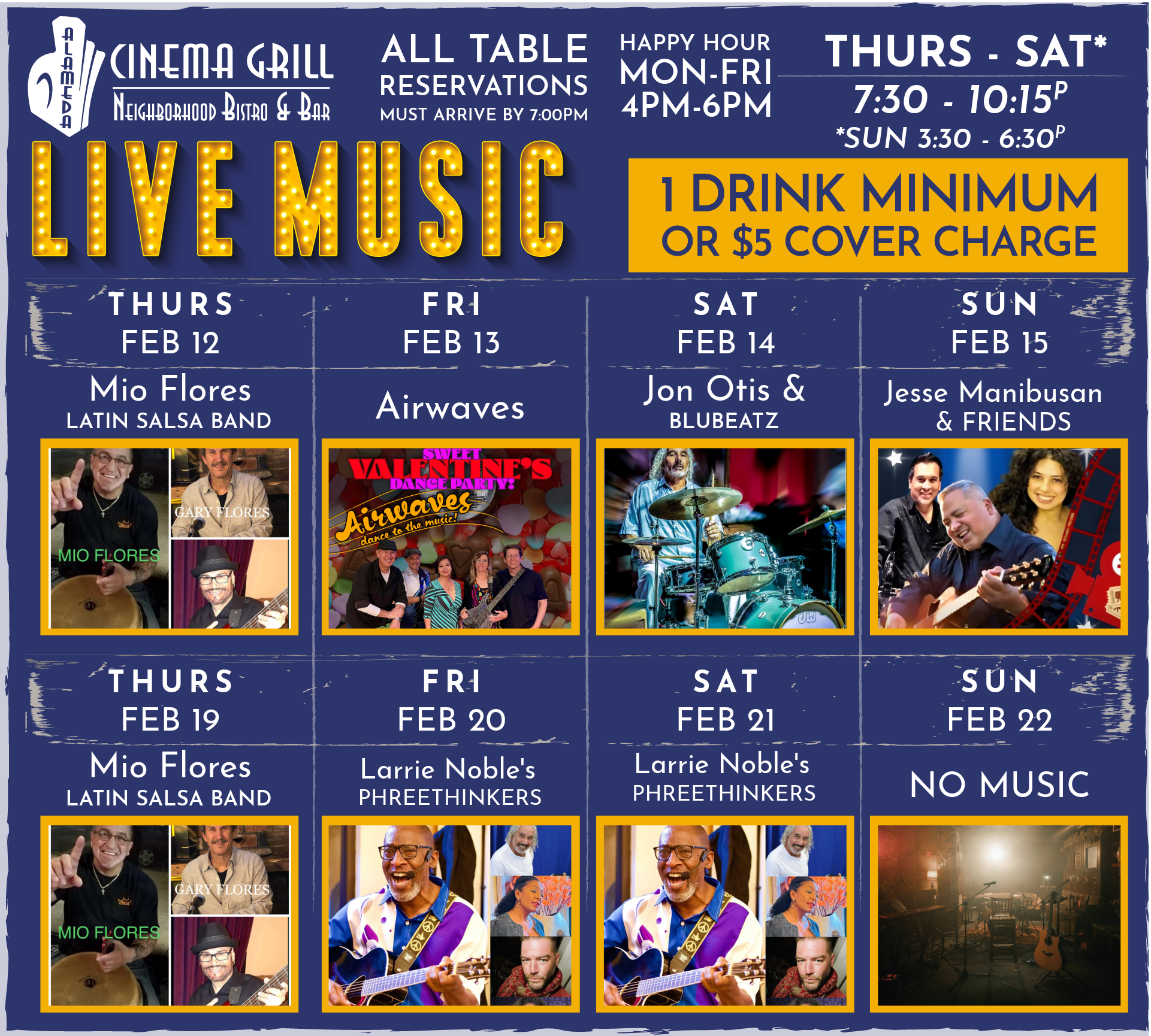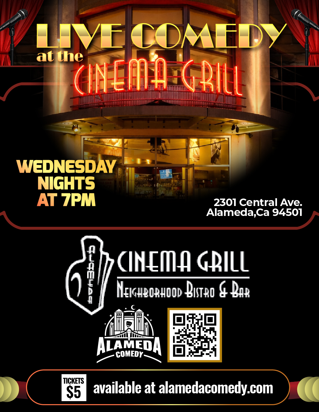 Right next door to the Alameda Theatre & Cineplex in Downtown Alameda. Come see us before or after your movie, or you can order delicious food & drinks to be enjoyed in your theatre seat during the movie! We offer an eclectic selection of tasty options paired with craft cocktails, regional wines, and micro brews!